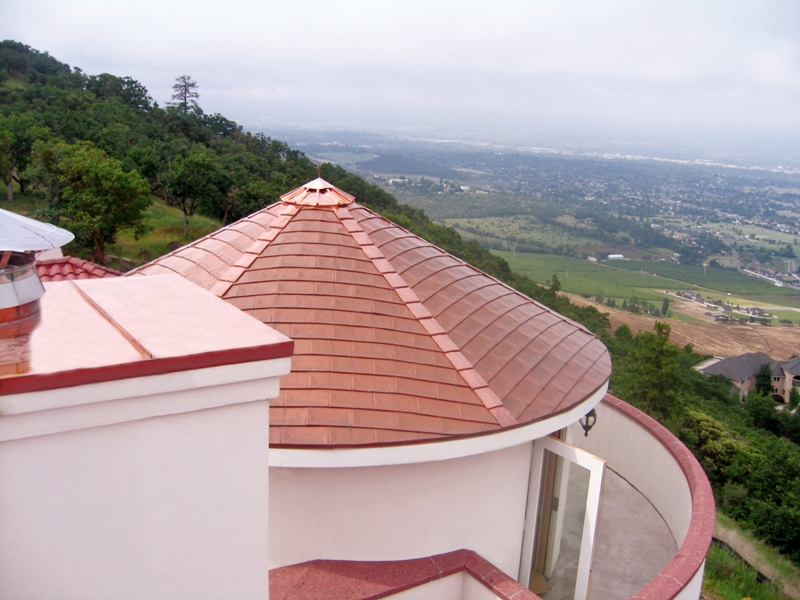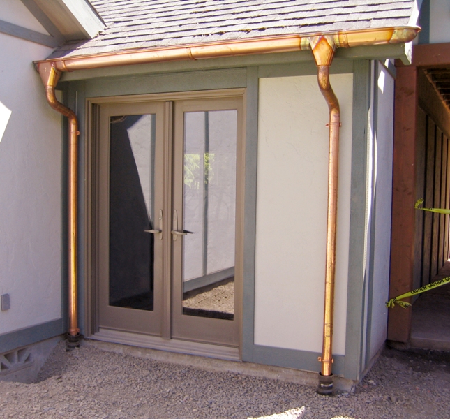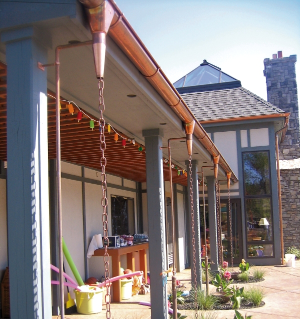 Our Work Installations Copper tile backsplash Copper gutter with rain chains Copper roof INSIDE MITER